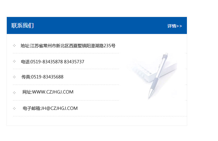 傳真:0519-83435688    郵編:213135    網址:WWW.czjhgj_com.rendanongye.com    電子郵箱:JH@czjhgj_com.rendanongye.com